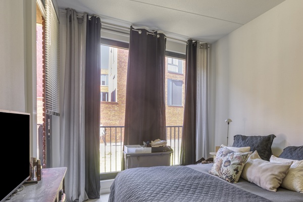 Het appartement is gelegen aan de straat Achter het Vleeshuis. Dankzij de vele ramen in de woonkamer...