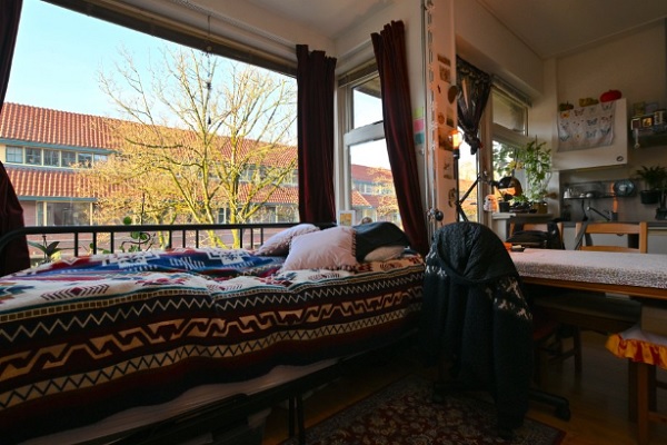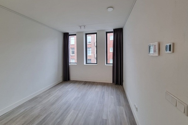 De studio is gelegen op de eerste etage aan de voorzijde. De studio beschikt over grote raampartijen...