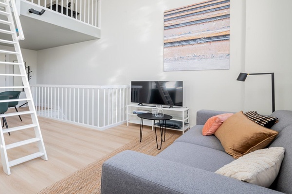 De moderne, open keuken is ideaal voor het bereiden van uw favoriete maaltijden terwijl u in de woonkamer met de gasten bezig blijft. Hij heeft een strak donker design met een contrasterend wit aanrechtblad, compleet met inductiekookplaat, koelkast met vriesvak, vaatwasser en afzuigkap. De ronde eettafel maximaliseert de ruimte, waardoor hij perfect is voor bijeenkomsten. Boven biedt de mezzanine een speciale studeerruimte, terwijl de keldersuite de gezellige slaapkamer herbergt, bereikbaar via een trap. De privébadkamer is een rustig toevluchtsoord met een grote douche met glazen deur, een wastafel en rustgevende beige tegels. Ideaal voor (uitwisselings)studenten, expats en professionals die tijdelijk woonruimte nodig hebben vanwege woningrenovatie, verkoop, relatiewijzigingen, stages of kortdurende werkopdrachten in of rond Nijmegen.