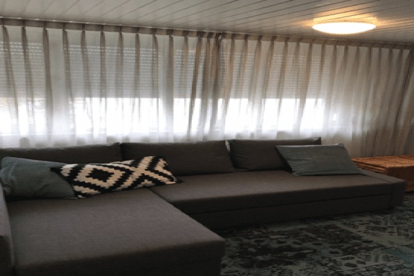Indeling: Binnenkomst in centrale gang, gedeelde voordeur met slechts één appartement. Begane grond: Ruim opgezette keuken van alle gemakken voorzien zoals o.a. een grote koelkast met vriezer, wasmachine, 5-pits gasfornuis, oven en magnetron. De keuken is uitgerust met zithoek. Daarnaast bevindt zich op de eerste verdieping een opbergkast en de badkamer met douchekabine, wastafel met spiegel en toilet. Tweede verdieping: Een grote woonkamer met tv en slaapbank, veel lichtinval door de grote raampartij. Genoeg opbergruimte en een wasmachine en droger. Slaapkamer voorzien van een kastje en 2-persoonbed.