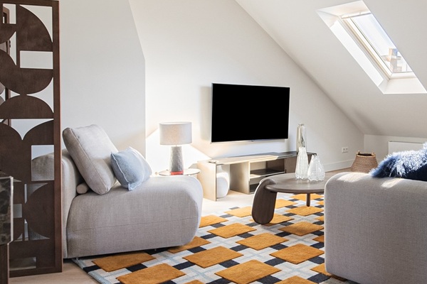 Indeling De gemeenschappelijke entree biedt toegang tot de verdiepingen van het appartementencomplex. Vanuit de hal heeft u toegang tot het portaal, waar een trapopgang naar de eerste verdieping leidt. Op de eerste verdieping bevindt zich de toegangstrap naar de woning. Bij binnenkomst via het portaal komt u direct bij de trap naar de woning en de slaapkamer. Deze slaapkamer is voorzien van een open badkamer en biedt toegang tot een zonnig balkon. De slaapkamer op deze verdieping is ruim en licht, en grenst aan de open badkamer met inloopdouche en wastafel met meubel. Het balkon aan de slaapkamer biedt een prachtig uitzicht en veel zonlicht. Op dezelfde etage bevindt zich ook een apart toilet, volledig betegeld met moderne accessoires. Via de vaste trap bereikt u de woonkamer. Deze is licht en ruim, met een open indeling. De woonkamer heeft een prachtig uitzicht en biedt veel ruimte voor een zithoek. De open keuken is luxe en voorzien van een kookeiland en diverse inbouwapparatuur, waaronder een kookplaat, oven, koelkast en vaatwasser. Het is een perfecte ruimte voor zowel koken als.