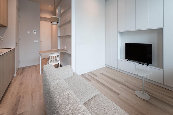 De volledig uitgeruste keuken biedt alles voor culinair gemak, terwijl de moderne badkamer een oase van rust vormt. Grote ramen zorgen voor veel natuurlijk licht, waardoor de efficiënt ingerichte ruimte nog lichter en ruimer aanvoelt. Elk detail van het appartement is met zorg afgewerkt, wat zorgt voor een luxe uitstraling op topniveau.