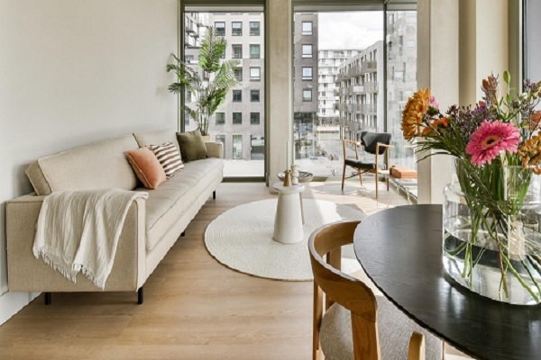 Niet geschikt voor woningdelers Indeling Via de trap of lift bereik je de entree op de tweede verdieping. De ruime hal met plafondhoge, op maat gemaakte deuren geeft toegang tot alle vertrekken en benadrukt de royale hoogte van de woning. De woonkamer met open keuken is een echte eyecatcher: heerlijk licht door de hoekligging, bijna 3 meter hoge plafonds en kamerhoge ramen. De keuken van Piet Boon is een droom voor kookliefhebbers, voorzien van een kookeiland met Bora-kookplaat, hardstenen blad, Quooker en hoogwaardige inbouwapparatuur. Vanuit de woonkamer stap je het zonnige balkon op, gelegen op het zuidoosten: een ideale plek om te genieten van de ochtend- en middagzon. De woning beschikt over twee ruime slaapkamers en een luxe badkamer van Tortu met inloopdouche, vrijstaand bad en modern wastafelmeubel. Verder is er een separaat toilet, een praktische berging met technische installaties en aansluitingen voor wasmachine en droger. In de onderbouw beschik je over een externe berging, een gezamenlijke fietsenstalling met fietslift en de mogelijkheid tot huren van een eigen parkeerplaats.