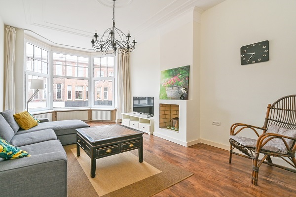INDELING Open portiek, u neemt de trap naar de eerste etage, waar de voordeur van het appartement zich bevindt. Binnenkomt in de hal, die alle vertrekken op een centrale wijze verbindt. De lichte en ruime woonkamer is af te scheiden door een charmante en-suite met glas-in-looddeuren, waardoor er een gezellige en karakteristieke sfeer ontstaat. Grote raampartijen zorgen voor veel daglicht en een prettige ambiance. De moderne keuken is van alle gemakken voorzien, inclusief een separate koel-vriescombinatie, inductiekookplaat, nieuwe oven, magnetron, vaatwasser en afzuigkap. Vanuit de keuken heeft u direct toegang tot het zeer grote en zonnige terras van 45 m². De woning beschikt over twee slaapkamers, gelegen aan de voor- en achterzijde van het appartement. De badkamer is uitgerust met een bad- douche combinatie, wastafel, handdoekradiator en de aansluiting voor een wasmachine. In de hal bevindt zich een separaat toilet met fontein en een kast met bergruimte. geen woningdelers