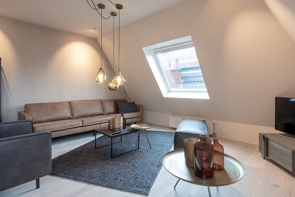 Indeling Het appartement is gelegen aan de achterzijde van het pand, zowel op de eerste als tweede verdieping. Het appartement kenmerkt zich door de warme en natuurlijke tinten. Op de tweede verdieping bevindt zich de royale en lichte woonkamer met luxe open keuken. De slaapkamers en zeer luxe badkamers, met lichtgevende regendouches, bevinden zich op de eerste verdieping.
