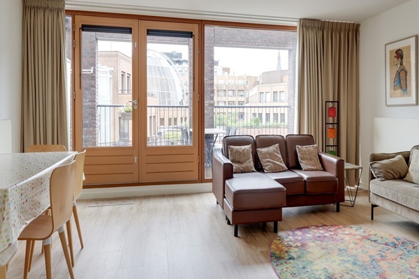 Indeling Centrale entree voorzien bellentableau (videofoon installatie), brievenbussen, toegang tot de lift, trappengang en eigen berging. Eigen afgesloten ruime berging. Entree: De ruime hal is voorzien van een videofoon installatie, laminaatvloer, geheel witte wanden, een fijn spuitwerk plafond en een eigen meterkast welke voorzien is van 5 groepen en 2 aardlekschakelaars. Een aparte hangend toilet voorzien van een tegelvoer, een fonteintje en bidetset. De ruime woonkamer is voorzien laminaatvloer met openslaande deuren naar het ruime dakterras aan de voorzijde gelegen met schitterend uitzicht op de Jan van Lieshoutstraat/Heuvel Galerie dakterras. De moderne open keuken heeft alle denkbare inbouwapparatuur zoals inductiekookplaat, afzuigkap, combimagnetron, vaatwasser en koelkast met diepvriesvak. In een aparte berging/ bijkeuken bevindt zich de cv-installatie, mechanische installatie, wasmachine en droger. Een volledig betegelde badkamer welke voorzien is van een fijn spuitwerk plafond, wastafel in meubel met lades, designradiator met thermostaatkraan, douchecabine met een mengkraan, een ligbad met mengkraan, mechanische installatie. De zeer ruime slaapkamer (aan de achterzijde gelegen) is voorzien van laminaatvloer, 2 ruime kledingkasten, airco, witte wanden en een fijn spuitwerk plafond. Balkon Het ruime dakterras is voorzien van vlonders, een elektrisch zonneluifel met mooie uitkijk over het dakterras van de heuvelgalerie, het gezellige Jan van Lieshoutstraat, de markt van Eindhoven. Kortom een unieke plek om heerlijk te vertoeven.
