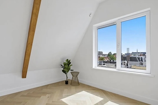 Indeling: Via de gezamenlijke entree op straatniveau kom je in het trappenhuis welke zojuist volledig is gerenoveerd. De entree van de woning is op de 2e etage waarna een trap je naar naar de top etage brengt. De woonkamer is licht en ruim en heeft een open woonkeuken voorzien van luxe apparatuur zoals twee ovens, inductiekookplaat, vaatwasser en koel- vriescombinatie. Via openslaande deuren heb je toegang tot het balkon gelegen op het zuidoosten met ochtend- en middagzon. In de gang is het toilet met fontein. De hoofdslaapkamer is gelegen aan de achterzijde. De tweede slaapkamer is gelegen tussen de hoofdslaapkamer en de keuken. De badkamer is ruim en luxe, en voorzien van ligbad, inloopdouche, wastafelmeubel en handdoek radiator. Door de gehele woning ligt een prachtige houten visgraat vloer met vloerverwarming. De woning wordt volledig gemeubileerd opgeleverd. Niet geschikt voor woningdelers