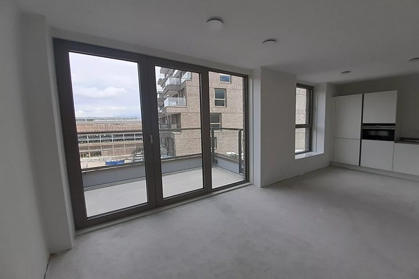 De woonkamer is licht en ruim, met grote raampartijen die zorgen voor veel natuurlijk daglicht. De open keuken sluit er mooi op aan en is uitgevoerd in wit met een zwart composiet aanrechtblad. Dankzij de Siemens inbouwapparatuur – waaronder een inductiekookplaat, afzuigkap, combimagnetron/oven, vaatwasser en koel-vriescombinatie – is koken hier een feestje. Het oostelijk gelegen balkon is bereikbaar vanuit de woonkamer en biedt een fijne plek om ’s ochtends in de zon te zitten. Daarnaast beschikt de woning over een interne berging, ideaal voor extra opslag of als wasruimte. De twee slaapkamers zijn goed van formaat en flexibel in te richten – perfect als slaap-, werk- of logeerkamer. De badkamer is volledig betegeld en voorzien van een inloopdouche, brede wastafel met spiegel, elektrische radiator en comfortabele vloerverwarming. Het aparte toilet bevindt zich naast de badkamer.