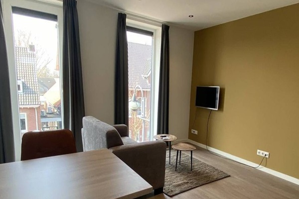 Indeling: Gemeenschappelijke entree met bellen tableau, intercom en brievenbussen. Binnenkomst in centrale hal met trapopgang naar de verdiepingen waar de appartementen zijn gelegen. Doorgang naar de meterkasten, gemeenschappelijke fietsenberging en container ruimte op de begane grond. Tweede verdieping: Trap toegang tot de galerij. Het appartement is gelegen op de tweede verdieping. Op de tweede verdieping bevindt zich een gemeenschappelijke stadstuin. Binnenkomst in hal met toegang tot de slaapkamer, badkamer en bergruimte. Doorgang naar de ruime woonkamer, voorzien van mooie pvc vloer, verduisterende gordijnen en verlichting. Het appartement beschikt over een open keuken in wandopstelling voorzien van inductie kookplaat, afzuigkap, vaatwasser, koelkast, combi magnetron, wastafel en diverse onder en boven kastjes. De slaapkamer is gelegen aan de voorzijde van het appartement. Eveneens voorzien van pvc vloer, verduisterende gordijnen en verlichting. Moderne badkamer voorzien van inloop regendouche, zwevend toilet en wastafel met meubel. De badkamer is volledig betegeld met marmer look wandtegels. Het appartement beschikt over een bergruimte voorzien van aansluiting voor was apparatuur.