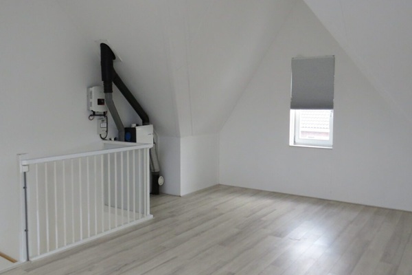 Vanuit de hal komt u de woonkamer binnen. De hoekkeuken is voorzien van alle benodigde inbouwapparatuur. Op de eerste etage zijn de 3 slaapkamers en badkamer gelegen. De badkamer is voorzien van bad, douche, wastafel en toilet. Op de zolder treft u de vierde slaapkamer. Ook zit hier de wasmachine aansluiting.