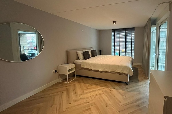 Het ruim opgezette appartement bestaat uit één slaapkamer, een badkamer en een open woonkamer met ke...