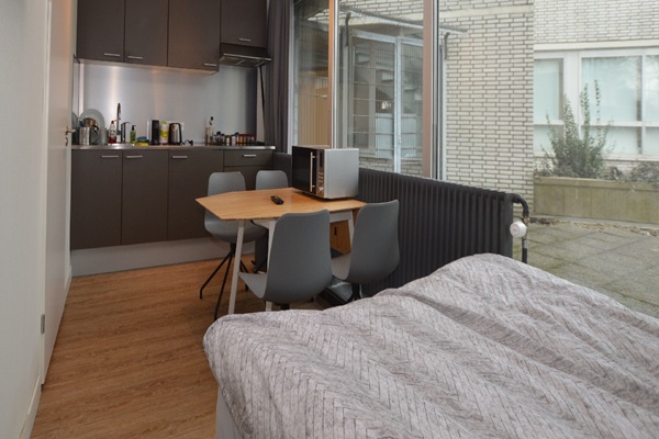 Indeling: Woon-/slaapkamer met veel lichtinval en openslaande deuren naar een binnenplaats/tuin Ha...