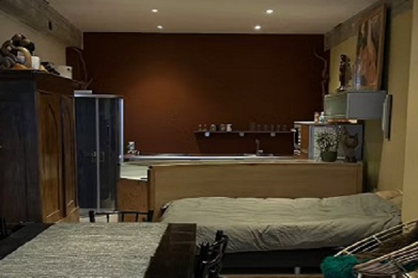 Privéstudio met eigen toegangsdeur. Volledig ingericht met koelkast, kookplaat, gootsteen, eigen dou...