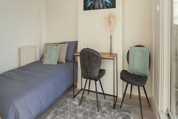 De woonruimte biedt een comfortabele woonomgeving en beschikt over een eigen badkamer. De keuken wor...
