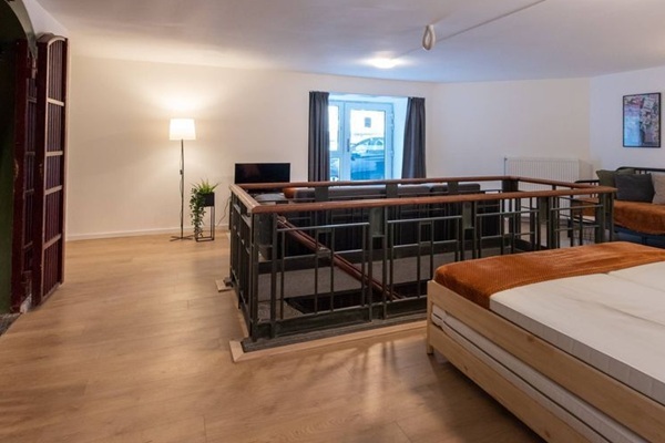 De studio (ca. 27 m²) bevindt zich op de tweede verdieping en beschikt over een lichte woon-/slaapru...