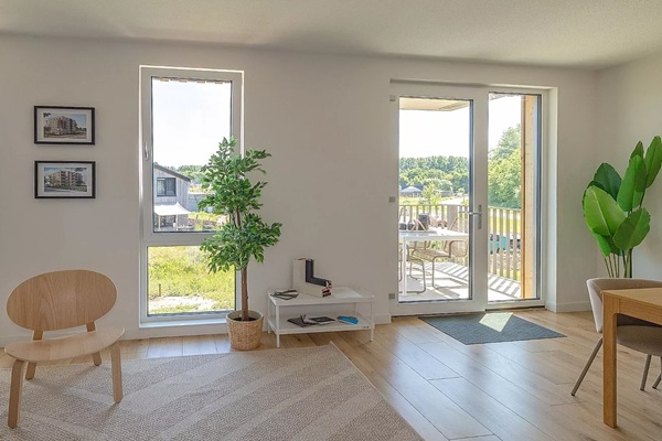 Deze hoekwoning heef een woonkamer met open keuken. De keuken is voorzien van een vaatwasser, inductiekookplaat met afzuigkap en een koelkast. De woonkamer heeft openslaande deuren naar het terras. Op de benedenverdieping bevindt zich tevens het toilet, warmtepomp en de meterkast. Op de eerste verdieping ligt de badkamer en 3 slaapkamers. De badkamer is voorzien van een inloopdouche, wastafel, tweede toilet en de aansluiting voor de wasapparatuur. De slaapkamers zijn 13, 11 en 6 m2.