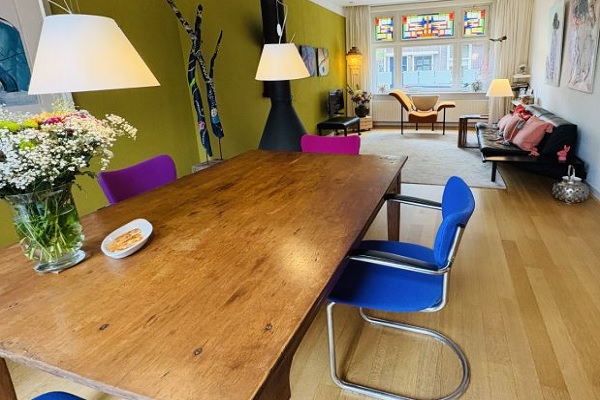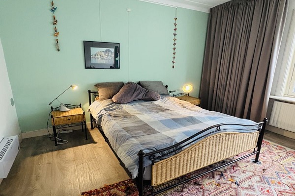Indeling Bij binnenkomst betreed je eerst het portiek, met toegang tot de hal. Vanuit de hal kom je in de ruime woonkamer, voorzien van een mooie houten vloer en openslaande deuren naar de tuin. De woonkamer biedt tevens toegang tot een praktische bergkelder. De open keuken in lichte kleuropstelling is ruim opgezet en voorzien van alle gemakken: een 4-pits gasfornuis met afzuigkap, oven, vaatwasser en gootsteen. Aansluitend bevindt zich de bijkeuken, waar een wasmachine en droger staan opgesteld. Vanuit de bijkeuken is er toegang tot een apart toilet met fonteintje en eveneens tot de achtertuin. Via de trap bereik je de eerste verdieping, waar zich de moderne badkamer bevindt, uitgerust met een ligbad, inloopdouche, tweede toilet en een wastafel met meubel. De eerste slaapkamer ligt aan de achterzijde van de woning en beschikt over een tweepersoonsbed, airconditioning en een inpandige kledingkast. De tweede slaapkamer ligt aan de voorzijde en is eveneens voorzien van een tweepersoonsbed, inpandige kledingkast en een gezellig zitje. Alle kamers (woonkamer en slaapkamers) zijn afsluitbaar met sleutels. De woning heeft een deels bestrate, gezellige tuin met vijver — een heerlijke plek om te ontspannen. Naast de woning bevindt zich een afgesloten gang met toegang tot de tuin. Onder het afdakje in de tuin kunnen fietsen droog geplaatst worden. Woning mag alleen door 1 of 2 studenten