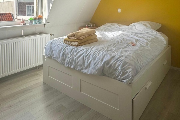 Alleen beschikbaar voor studenten Dan is deze lichte, ruime zolderkamer precies wat je zoekt! De kamer bevindt zich op de tweede (en bovenste) verdieping van het huis en is bereikbaar via de trap. Dankzij de open indeling voelt de ruimte ruim aan en kun je eenvoudig een woon- en slaapgedeelte creëren. De voorzieningen deel je met slechts één andere bewoonster. Op de eerste verdieping vind je de eenvoudige gezamenlijke douche, het toilet en een extra keukentje waar je kunt koken of een snelle snack kunt bereiden. Kortom: een ideale studentenkamer op een prettige locatie, op korte afstand van het centrum van Leiden.