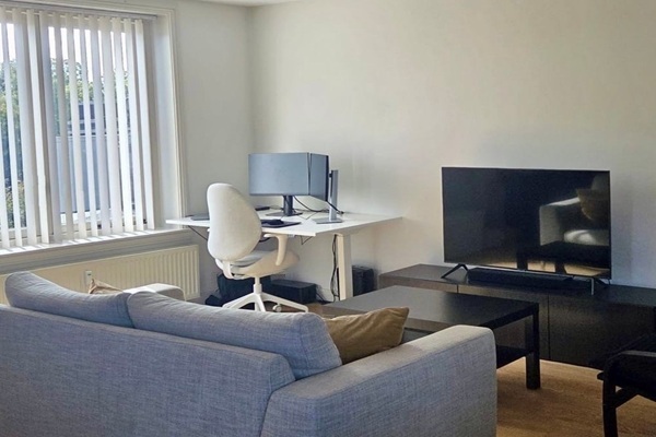 Indeling Gang, gezamenlijke wasruimte met wasmachine en wasdroger, berging Centrale entree met trappenhuis dat toegang geeft tot de bovengelegen appartementen en de wasruimte en de bergingen in het souterrain Entree appartement, badkamer met douche, wastafel, toilet (hang) en extra fonteintje, royale lichte woonkamer, open keuken met inbouwapparatuur waaronder een vaatwasser, inductiekookplaat, afzuigkap en een koelkast, grote slaapkamer
