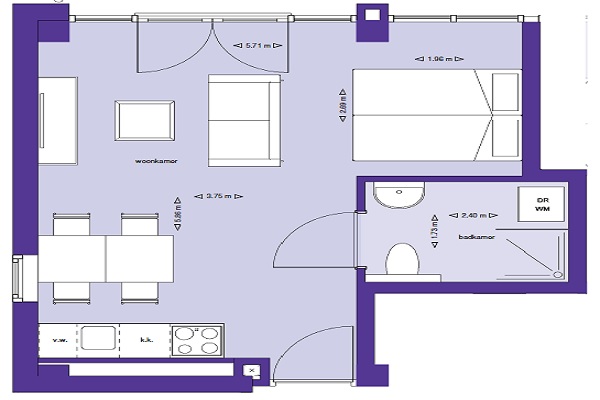 Indeling Bij binnenkomst treft u direct aan de linkerzijde de moderne keuken, voorzien van diverse inbouwapparatuur. Aan de rechterzijde bevindt zich de badkamer, uitgerust met een douchehoek, toilet, wastafel met spiegel en planchet, en aansluitingen voor een wasmachine en droger. Vervolgens komt u in de lichte woonkamer, waar tevens voldoende ruimte is om een comfortabele slaaphoek te creëren. Via het Franse balkon geniet u van een frisse bries en haalt u het buitengevoel naar binnen!