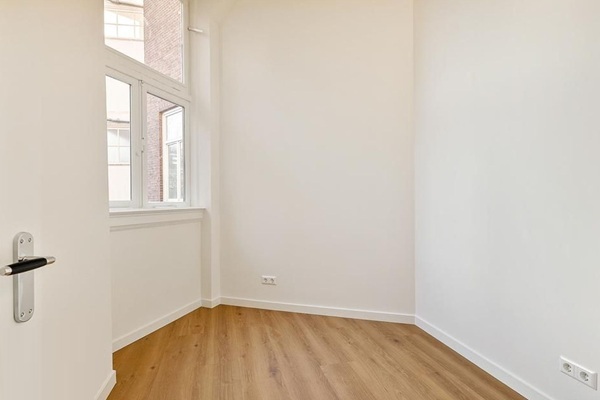 Let op: de woning is niet geschikt voor woning delers. Indeling: hal met opbergkasten en wasruimte; ruime woonkamer met toegang tot het balkon en luxe open keuken incl. inbouwapparatuur en een keukeneiland; ruime slaapkamer aan de voorzijde van de woning; tweede slaapkamer aan de achterzijde van de woning die gebruikt kan worden als bijv. een studeerkamer; badkamer met inloop douche en een wastafel; separaat toilet.