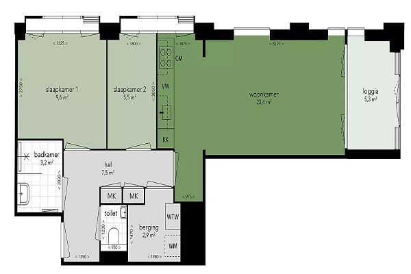 Dit moderne tweekamerappartement aan de Postjesweg biedt comfort, licht en een doordachte indeling op de vijftiende verdieping. Met een woonoppervlakte van 56 m² is dit de ideale plek voor wie wil genieten van eigentijds wonen in een goed onderhouden complex. De ruime woonkamer van 23,4 m² is het hart van de woning en biedt volop ruimte voor een gezellige zithoek en eettafel. Dankzij de grote ramen valt er veel natuurlijk licht binnen en sluit de woonkamer naadloos aan op de loggia van 5,3 m² – een fijne plek om te ontspannen met of te genieten van de avondzon. De open keuken is modern ingericht en voorzien van diverse inbouwapparatuur, waaronder een combimagnetron, koelkast, vaatwasser en kookplaat. Vanuit de hal zijn de twee slaapkamers bereikbaar: een royale slaapkamer van 9,6 m² en een tweede kamer van 5,5 m², ideaal als werkkamer, logeerkamer of inloopkast. De badkamer is compact maar stijlvol, met een douche en wastafel. Daarnaast beschikt de woning over een separaat toilet en een berging met aansluitingen voor wasmachine en droger. Het appartement is goed geïsoleerd en voorzien van een warmte-terugwin-unit, wat zorgt voor een comfortabel binnenklimaat en lage energiekosten.