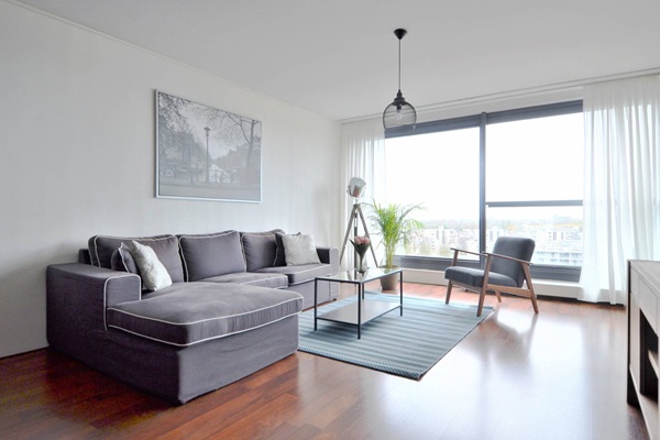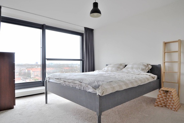OOK GESCHIKT VOOR MAX 2 (STUDENTEN) DELERS Indeling Op de begane grond bevindt zich een centrale entree met brievenbussen, het kantoor van de huismeester, 2 liften, een trappenhuis en toegang tot de parkeerkelder met een optioneel bij te huren privé parkeerplaats en de gezamenlijke fietsenberging. Op de elfde verdieping is de ingang tot het appartement. Na aankomst met de lift wordt u verwelkomd door een prachtig hemelsblauw tapijt dat u naar de gang leidt richting uw entree. Bij binnenkomst treft u een ruime hal met toegang tot alle vertrekken. De royale en lichte woonkamer, met grote raampartijen op het westen, biedt toegang tot de loggia (die ook bereikbaar is via alle kamers). Beide ruime slaapkamers hebben toegang tot de loggia/serre, evenals de woonkamer. De ruime badkamer is uitgerust met een ligbad, inloopdouche en wastafel. Het appartement beschikt over het gemak van een apart toilet. De praktische en ruime halfopen keuken is voorzien van alle inbouwapparatuur. Naast de keuken bevindt zich de berging/CV-ruimte, uitgerust met onder andere een wasmachine. Aan alle kamers geven de enorme raampartijen, die van plafond tot vloer rijken, op heldere dagen, uitzicht voorbij Hoofddorp!