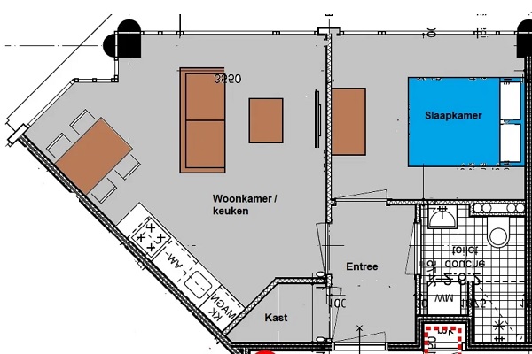 Het appartement beschikt over: -Een woonkamer; -Een volledig ingerichte keuken met vaatwasser, elektrische kookplaat, afzuigkap, spoelbak en koelkast (met vriesvakje); -Slaapkamer met ruimte voor een kast; -Separate bergkast; -Net afgewerkte badkamer met inloopdouche, toilet, vaste wastafel en aansluiting wasapparatuur. Op de bovenste etage bevind zich een gemeenschappelijke lounge-ruimte met dakterras met uitzicht over de stad. Het is mogelijk om bij de gemeente Helmond een parkeerabonnement af te sluiten voor een parkeerplaats in de parkeergarage Doorneind die achter het appartementengebouw is gelegen.