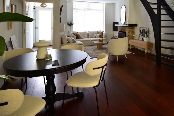 Indeling: Middels portaal toegang naar de woonkamer welke is voorzien van een houten parketvloer, een open haard en een open keuken. De open keuken in hoekopstelling is voorzien van een vaastwasser, fornuis, oven, afzuigkap, koelkast, vriezer, magnetron en diverse onder- en bovenkasten. Vanuit de keuken toegang naar de achtertuin voorzien van stenen berging met de aansluitingen voor de wasapparatuur. Op de begane grond vindt men tevens de badkamer voorzien van een wastafel en douche en een separaat toilet. Vanuit de woonkamer middels trapopgang toegang tot de tweede verdieping. Hier vindt men twee slaapkamers en een royaal en zeer zonnig dakterras.