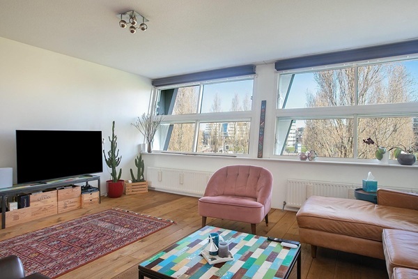 Dit zeer ruime appartement (110 m²) is gelegen op de 4e verdieping met lift en is verdeeld over 2 verdiepingen. Het beschikt over een ruime en lichte woonkamer, open keuken met alle apparatuur, gezellige eetkamer met toegang tot het zonnige terras, 2 slaapkamers met inbouwkasten, badkamer met douche en wastafel, berging met wasmachine/droger en 2 aparte toiletten. -Niet beschikbaar om te delen
