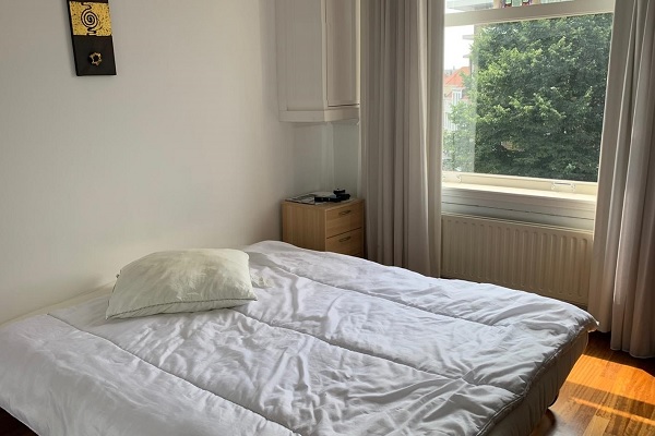 Indeling Beveiligde entree met trap naar de tweede verdieping. Lichte woon-/eetkamer met ensuite badkamer, open haard, ornamentenplafond en openslaande deuren naar het balkon met glas-in-lood. Keuken voorzien van vaatwasser, koel-/vriescombinatie, fornuis, afzuigkap, oven, voldoende kastruimte en toegang tot het balkon. Ruime hoofdslaapkamer met tweepersoonsbed en kledingkast. Badkamer met douche-/badcombinatie, wastafel, toilet en bidet. Apart toilet. Tweede slaapkamer met tweepersoonsbed en kledingkast. Door de gehele woning ligt een laminaatvloer.