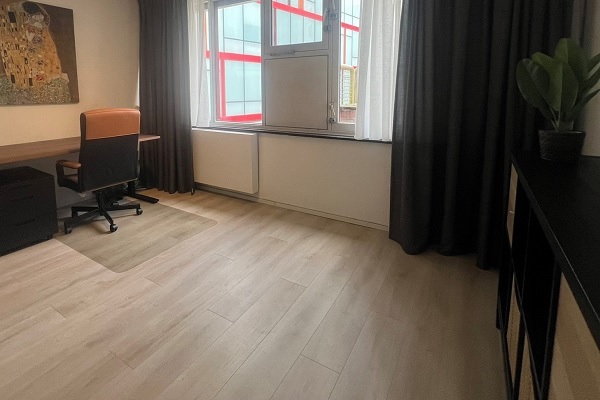 Niet geschikt voor woningdelers Indeling De gemeenschappelijke entree met bellentableau biedt toegang tot de appartementen, de liftinstallatie en het trappenhuis. De hal is voorzien van een interne berging met ingebouwde kast en biedt toegang naar de eerste slaapkamer. Een separaat toilet en fonteintje. Trap naar beneden. Woonkamer met aangrenzend balkon. Eetkamer met half open keuken. De keuken is voorzien van een inductiekookplaat met afzuiging, koelkast met vriesvak en een vaatwasser. Badkamer voorzien van een bad-douche combinatie en een tweepersoonswastafel. In de badkamer bevindt zich ook de wasmachine. Studeer-/werkkamer aan de achterzijde van de woning. De woning is niet geschikt voor woningdelers
