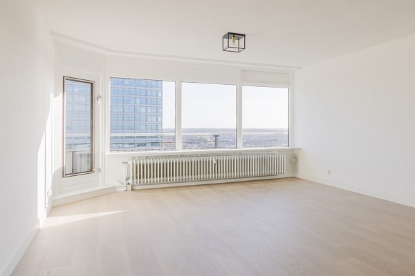 Indeling Begane grond: gemeenschappelijke entree, intercominstallatie, lift, ruime berging. 13e verdieping: ruime hal met meterkast, toilet met fonteintje, grote bergkast met boiler t.b.v. het warme water in de badkamer en keuken. Geheel betegelde badkamer voorzien van inloopdouche, wastafel en wasmachine- droger aansluiting. Toegang naar de lichte, ruime woonkamer met open keuken. De toegang naar het balkon is vanaf de woonkamer. De nieuwe, luxe keuken is voorzien van diverse inbouwapparatuur zoals inductiekookplaat, koelvriescombinatie, afzuigkap, combi-oven en afwasmachine. Het aanrecht is gemaakt van composiet. Verder zijn er twee ruime slaapkamers waarvan één voorzien is van een ruime inloopkast. Uitstekend geschikt voor studenten of werkende expats
