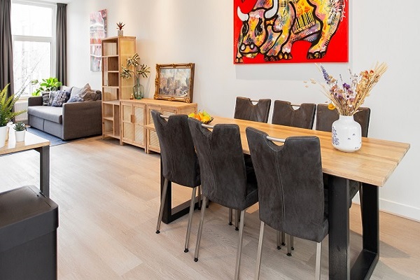 Indeling van de woning U komt binnen via de trap die u naar de entree van de woning leidt. De ruime woonkamer valt direct op door het vele natuurlijke licht en de moderne afwerking. De woonkamer is ingedeeld met een gezellige zithoek waar u tv kunt kijken én een fijne werkplek, ideaal voor thuiswerken. De open keuken is volledig uitgerust met hoogwaardige inbouwapparatuur, waaronder een oven/magnetroncombinatie, inductiekookplaat, vaatwasser en een grote koelkast met een aparte vriezer. Aan de achterzijde heeft u toegang tot het balkon, middels een schuifpui, waar u heerlijk kunt ontspannen in de buitenlucht. Op de hal bevindt zich de luxe badkamer, voorzien van een inloopdouche, hangend toilet, dubbele wastafel en een handdoekenradiator. Via de trap bereikt u de tweede verdieping, waar zich twee comfortabele slaapkamers bevinden. In één van de slaapkamers is een keukentje geplaatst met een inductieplaat, perfect voor het bereiden van een ontbijt of een snelle maaltijd. De tweede slaapkamer beschikt over een stijlvol ligbad en een wastafel, waardoor u hier in alle rust kunt ontspannen. Op de overloop is een wasmachine aanwezig.
