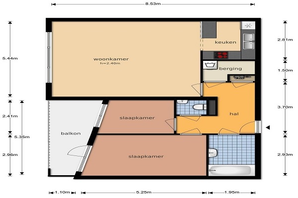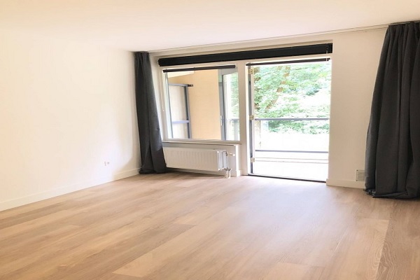 Indeling: Afgesloten centrale hal met brievenbussen en toegang tot de liften en het trappenhuis. Eerste etage: Entree appartement. Ruime hal met meterkast en garderobe, inpandige berging en toilet. Aan de linkerzijde van het appartement bevinden zich twee slaapkamers waarvan de grootste toegang biedt tot het balkon. Deze is gelegen op het zuiden en heeft een zonnescherm en biedt vrij uitzicht over Park Transwijk. De badkamer is inpandig en voorzien van een ligbad, een wastafel met zuil eronder alsmede een radiator. De woonkamer is ruim en voorzien van een halfopen keuken. De keuken in L-vorm is voorzien van diverse inbouwapparatuur waaronder een vaatwasser, koelkast, vriezer, oven, kookplaat en afzuigkap. In de onderbouw is er een parkeerplaats te huur en een berging aanwezig. De deur naar de parkeergarage is elektrisch bedienbaar. Voorkeur voor een werkende alleenstaande of een stel. NIET VOOR WONINGDELERS.