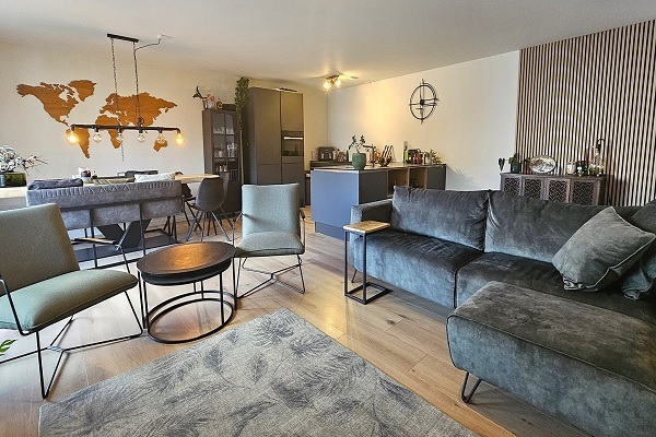 Indeling Via de entree betreed je een ruime hal met toegang tot alle vertrekken. De royale woonkamer is licht en uitnodigend dankzij de grote glazen pui over de volle breedte van de woning. Vanuit hier heb je directe toegang tot het enorme balkon, waar je in de avond kunt genieten van de zon en het uitzicht over de Maas – perfect voor een ontspannen borrel of diner buiten. De open woonkeuken is strak, modern en volledig uitgerust met hoogwaardige inbouwapparatuur: vaatwasser, combi-oven, grote koelkast, vriezer en inductiekookplaat. Alles is aanwezig voor wie van koken én comfort houdt. Het appartement beschikt over één ruime slaapkamer met een stijlvolle kastenwand en een aparte werk-/studeerkamer, ideaal voor thuiswerkers of logees. Beide kamers hebben toegang tot het balkon, zodat je ook daar kunt genieten van het uitzicht en de frisse buitenlucht. De luxe badkamer straalt rust en kwaliteit uit, voorzien van een ruime inloop regendouche en een strak vormgegeven wastafelmeubel. Daarnaast is er een separaat toilet en een aparte wasruimte met wasmachine en droger. In de onderbouw bevindt zich een eigen berging, ruim genoeg voor fietsen en extra opslag.