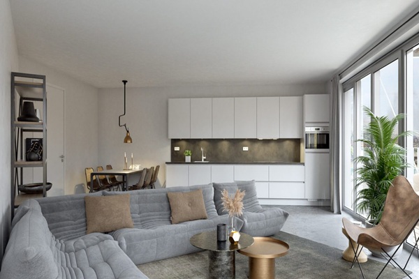 Indeling: Entree, lichte woonkamer met toegang tot balkon waar je heerlijk kunt zitten, luxe open keuken voorzien van een kookplaat, afzuigkap combi magnetron, koelkast met vriesvak en vaatwasser. Twee slaapkamers, badkamer met inloopdouche en wastafel, apart toilet met fontein en een berging die voorzien is van een wasmachine aansluiting.