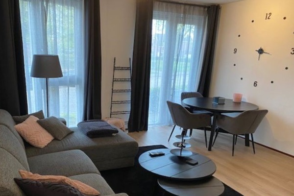 Het appartement heeft een ruime woonkamer met open keuken, 1 aparte slaapkamer en ruime badkamer met douche, wastafel en wasmachine aansluiting, een buitenruimte ( terras ) en een eigen prive berging. De keuken is zeer compleet uitgerust met een vaatwasser, inductie kookplaat, rvs afzuigkap, koelkast ( met vriesvakje ) en combi-magnetron. De woning heeft een gebruiksoppervlakte van 41 m2. De woning is uitstekend geïsoleerd. De ruimten worden verwarmd middels elektrische radiatoren. Het appartement heeft een eigen prive berging. Overname spullen: De huidige huurder verkoopt de vloer, prijs nader overeen te komen. Het parkeerterrein is voor gemeenschappelijk gebruik, bewoners hebben geen prive parkeerplek. Er staan twee deelauto's ( BMW ) op het parkeerterrein voor gezamenlijk gebruik.
