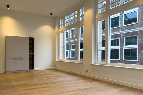 Indeling Begane grond trap of lift naar de eerste etage. Eigen voordeur, hal met toegang tot alle vertrekken. Zeer ruime slaapkamer met genoeg ruimte voor 2 persoons bed, kast en een bureau. Badkamer ligt aan de overkant van de gang, badkamer is zeer luxe, voorzien van een inloop douche, dubbele wastafel en een design radiator. Aan de voorzijde de woonkamer, echt een prachtig ruime en lichte woonkamer met open keuken.