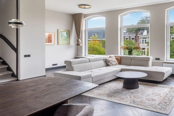 Indeling: 2e verdieping: Via de karakteristieke entree bereik je de woning. Hier vind je een stijlvolle woonkamer met visgraatvloer, open keuken met luxe inbouwapparatuur (Bora inductiekookplaat, oven, vaatwasser, koel-/vriescombinatie) en een ruim kookeiland met bar. De openslaande deuren leiden naar het balkon op het westen, perfect voor de middag- en avondzon. 3e verdieping: Overloop met toegang tot twee slaapkamers en een luxe badkamer met vrijstaand ligbad, inloopdouche, dubbele wastafel en een extra toilet. De master bedroom heeft prachtige, hoge raampartijen, terwijl de tweede slaapkamer ook royaal en licht is. Een ideaal appartement voor wie op zoek is naar comfort,
