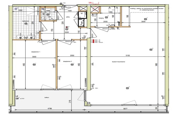 INDELING APPARTEMENTEN -Bellentableau met brievenbussen; -Trapopgang en lift naar verdiepingen. -Entree; -Hal met meterkast en voldoende ruimte voor een garderobe; -(Deels) betegelde toiletruimte voorzien van zwevend toilet en fonteintje; -Woonkamer met open keuken (in hoekopstelling) voorzien van diverse inbouwapparatuur waaronder koel-/vriescombinatie, combi-magnetron, inductiekookplaat, afzuigkap en vaatwasser; -Berging voorzien van aansluiting wasapparatuur -Technische ruimte voorzien van unit mechanische ventilatie; -(Deels) betegelde badkamer voorzien van douche en dubbele wastafel; -Slaapkamer 1; -Slaapkamer 2; -Balkon