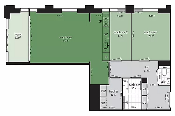 Dit moderne tweekamerappartement op de eerste verdieping van een goed onderhouden complex biedt licht, comfort en een praktische indeling. Met een woonoppervlakte van 58 m² is dit een ideale woning voor wie eigentijds en comfortabel wil wonen. De ruime woonkamer van 24,2 m² vormt het hart van het appartement en biedt voldoende ruimte voor een zithoek en eettafel. Dankzij de grote ramen valt er veel natuurlijk licht naar binnen en sluit de woonkamer aan op de loggia van 5 m², een fijne plek om te ontspannen. De open keuken is modern en voorzien van diverse inbouwapparatuur, waaronder een combimagnetron, koelkast, vaatwasser en kookplaat. Vanuit de hal zijn de twee slaapkamers bereikbaar: een royale slaapkamer van 10,1 m² en een tweede kamer van 5,5 m², ideaal als werkkamer, logeerkamer of inloopkast. De badkamer is compact maar stijlvol, met een douche en wastafel. Daarnaast is er een separaat toilet en een berging met aansluitingen voor wasmachine en droger. Het appartement is goed geïsoleerd en voorzien van een warmte-terugwin-unit voor een prettig binnenklimaat en lage energiekosten. De ligging is uitstekend: winkels, openbaar vervoer en uitvalswegen zijn allemaal dichtbij. Een comfortabel en licht appartement met alles wat je nodig hebt binnen handbereik.