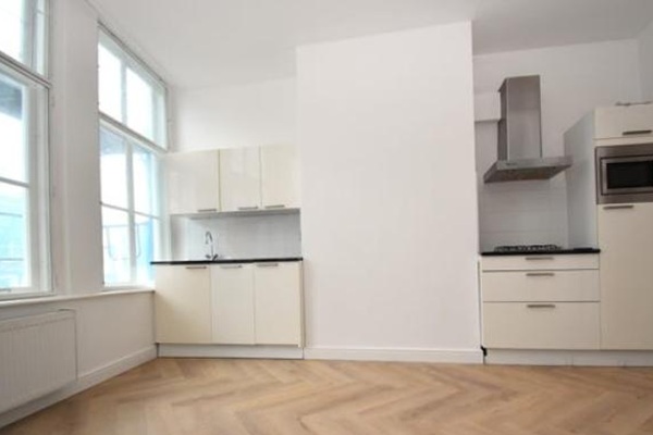 Voor 1 Student Indeling: Gezamenlijke entree op straatniveau, met de privévoordeur van het appartement op de eerste verdieping. De hal geeft toegang tot een gloednieuwe keuken met inbouwapparatuur (kookplaat, koelkast, magnetron/ovencombinatie), een lichte woonkamer en een slaapkamer met veel daglicht. De badkamer is voorzien van een aparte douche, wastafel en toilet.