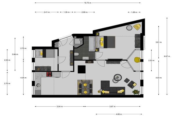 Indeling: Via de hoofdentree met tourniquetdeuren en videofoon, de majestueuze centrale hal met trappenhuis en twee liften, naar de zesde verdieping. Hal, was/-droogruimte, royale lichte woonkamer voorzien van laminaatvloer met houtlook, een hoogte van maar liefst 3.10 meter met grote kantelramen en entree naar loggia, moderne inbouwkeuken voorzien van kookplaat , afzuigkap , hetelucht-combi-oven en vaatwasser, 2 slaapkamers, beide voorzien van een laminaatvloer en waarvan 1 slaapkamer uitzicht naar de voorzijde en de ander gelegen aan de rustige achterzijde, badkamer voorzien van bad/douche combinatie, modern toilet en wastafel.