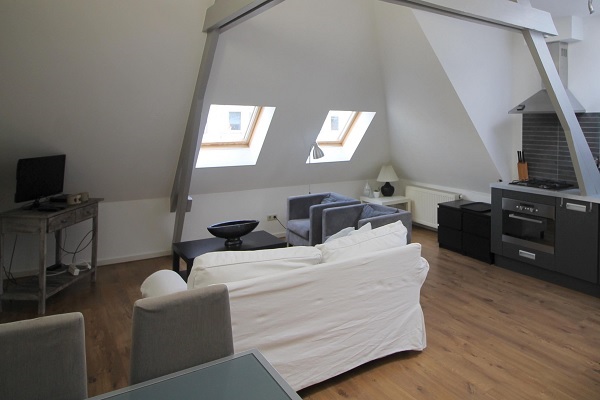 Dit volledig gemeubileerde appartement bevindt zich op de tweede verdieping van een elegant pand en is bereikbaar via een trap. Het appartement biedt een comfortabele en goed ingedeelde leefruimte, bestaande uit: Woonkamer met een compleet ingerichte open keuken. Wasruimte voorzien van een wasmachine en wasdroger. Badkamer met moderne voorzieningen. Slaapkamer met toegang tot een balkon aan de achterzijde (afmeting: 3,5 x 1,20 m). Indeling: Woonkamer: 5,65 x 4,90 m Keuken: 2,00 x 1,60 m Wasruimte: 1,50 x 1,00 m Slaapkamer: 3,70 x 2,85 m Balkon: 3,50 x 1,20 m Badkamer: 2,50 x 2,00 m Vide