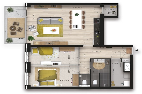 Dit ruime appartement ligt op de eerste verdieping van het complex. De moderne, witte keuken is voorzien van een koel-vriescombinatie, oven met magnetronfunctie, inductiekookplaat en vaatwasser. De badkamer heeft een inloopdouche en een dubbele wastafel met spiegel. Het toilet met fontein is apart. Vanuit de lichte woonkamer stap je zo het ruime balkon op. Daarnaast is er een grote berging binnen het appartement.