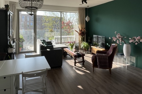 Dit ruime 3-kamer appartement bevindt zicht op de 4e etage. De L-vormige witte keuken is voorzien van koel/vriescombinatie, oven met magnetronfunctie, inductie kookplaat en een vaatwasser! De moderne badkamer is voorzien van een inloopdouche en een dubbele wastafel met spiegel. Het zwevend toilet met fontein bevindt zich in een aparte ruimte. Het appartement heeft een groot balkon die via de riante woonkamer te betreden is. Daarnaast is dit appartement voorzien van een ruime binnenberging!