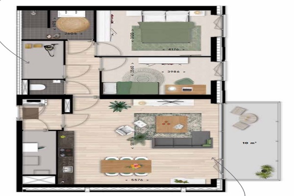 Dit ruime appartement ligt op de eerste verdieping van het complex. De moderne, witte keuken is voorzien van een koel-vriescombinatie, oven met magnetronfunctie, inductiekookplaat en vaatwasser. De badkamer heeft een inloopdouche en een dubbele wastafel met spiegel. Het toilet met fontein is apart. Vanuit de lichte woonkamer stap je zo het ruime balkon op. Daarnaast is er een grote berging binnen het appartement.