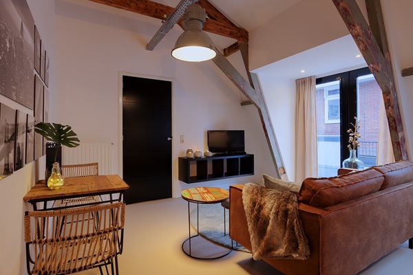 Het appartement kenmerkt zich door een compacte, efficiënte indeling met een lichte woonkamer en open keuken. De keuken is voorzien van diverse inbouwapparatuur. Verder is er één slaapkamer aanwezig. De badkamer is netjes en modern afgewerkt, met dubbele wastafel, wasmeubel en douche. Er is tevens een separate toilet.