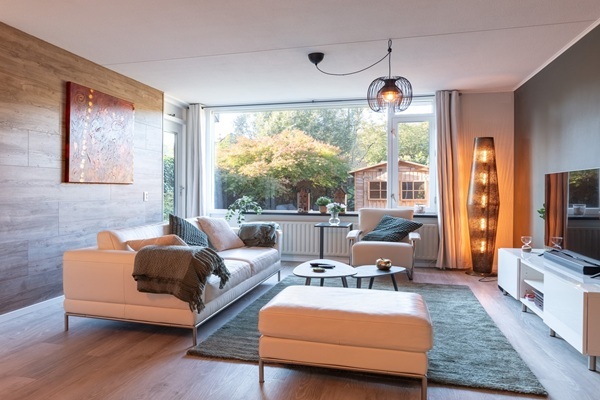 Indeling Begane grond Bij binnenkomst treft u een nette entree met tegelvloer, een gang met meterkast en een separate toiletruimte voorzien van fonteintje. Vanuit hier heeft u toegang tot de overige leefruimtes. De doorzon woonkamer is stijlvol afgewerkt met een laminaatvloer, strakke wand- en plafondafwerking en voorzien van rolluiken. Dankzij de grote raampartijen geniet u van veel natuurlijk licht en een fraai uitzicht op de ruime achtertuin. De woonkamer is volledig ingericht en beschikt over een smart-tv en internet. De open keuken is van alle gemakken voorzien en uitgerust met een 4-pits gaskookplaat, RVS afzuigkap, oven, koel-vriescombinatie, vaatwasser en complete keukeninventaris. Een ideale plek voor kookliefhebbers! Slaapkamer 1 Vanuit de woonkamer bereikt u de kleinere slaapkamer, voorzien van laminaatvloer en rolluik. Slaapkamer 2 De ruime hoofdslaapkamer bevindt zich aan de voorzijde van de woning en is bereikbaar via de hal. Deze kamer beschikt over een laminaatvloer, rolluik en directe toegang tot de badkamer. De badkamer is uitgerust met een wastafelmeubel met lades, een ligbad met douchewand en wasmachine. Berging Een extra inpandige berging in het appartementencomplex.